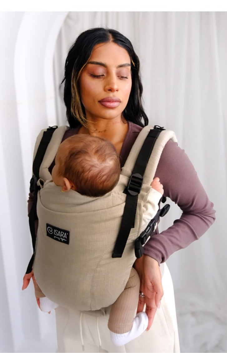 ISARA ONE Sage Green Linen är utrustad med revolutionerande funktioner som gör att bäraren kan ultrajustera bäraren både i längd och bredd.