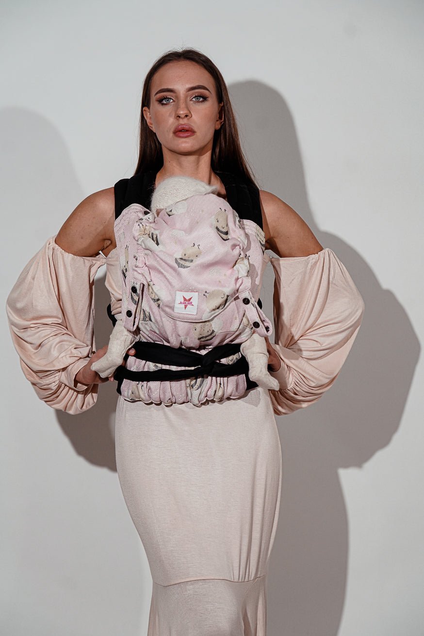 KOKADI TaiTai Wonder Bee Maya kombinerar en bärseles anpassningsförmåga med en enkelhet hos en bärsele med spänne . De vadderade axelremmarna är knutna, vilket möjliggör individuell justering.