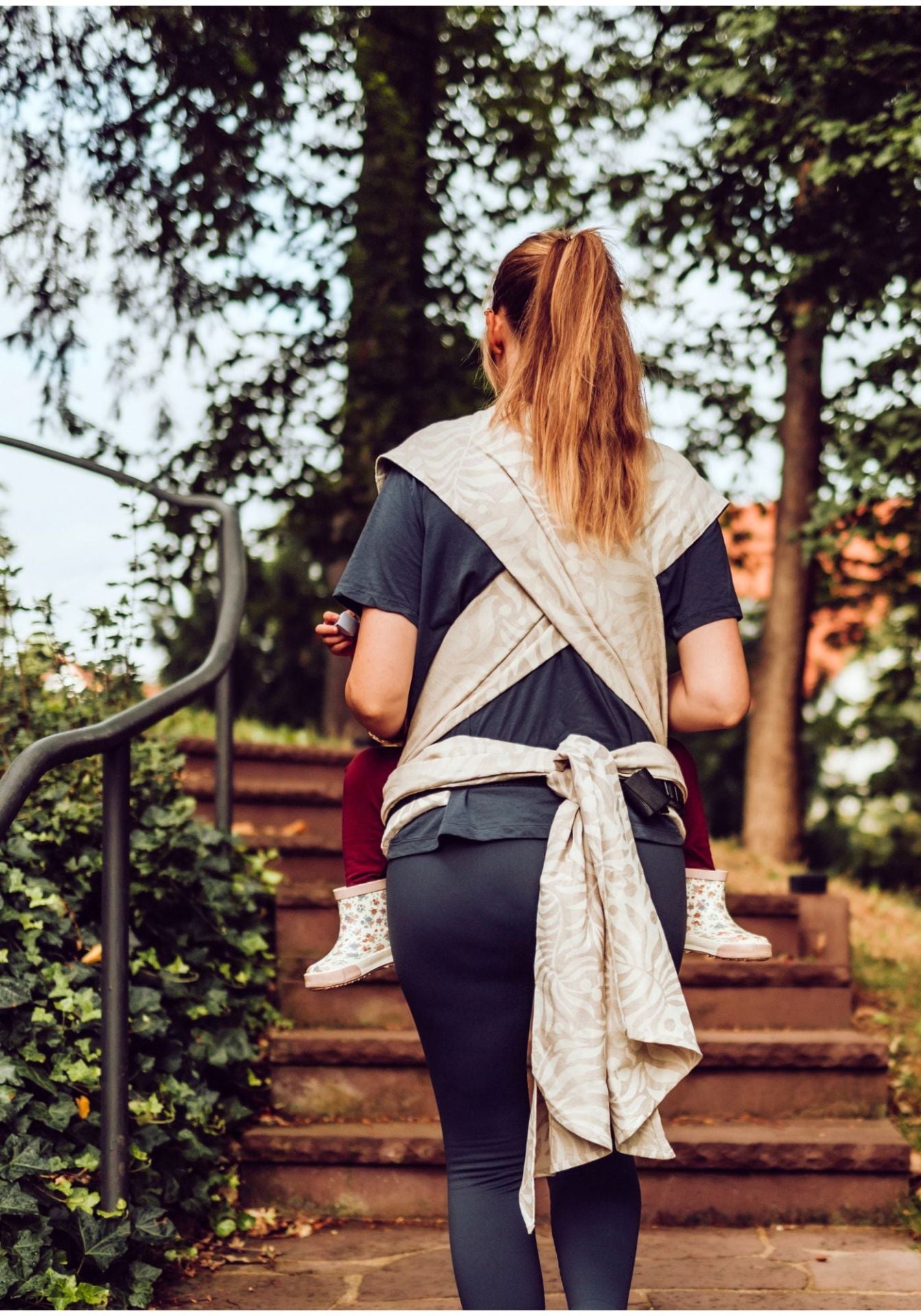 Die LELIBA Wrap Up kann am Bauch, auf dem Rücken oder auf der Hüfte getragen werden und passt sich flexibel an euren Alltag an.