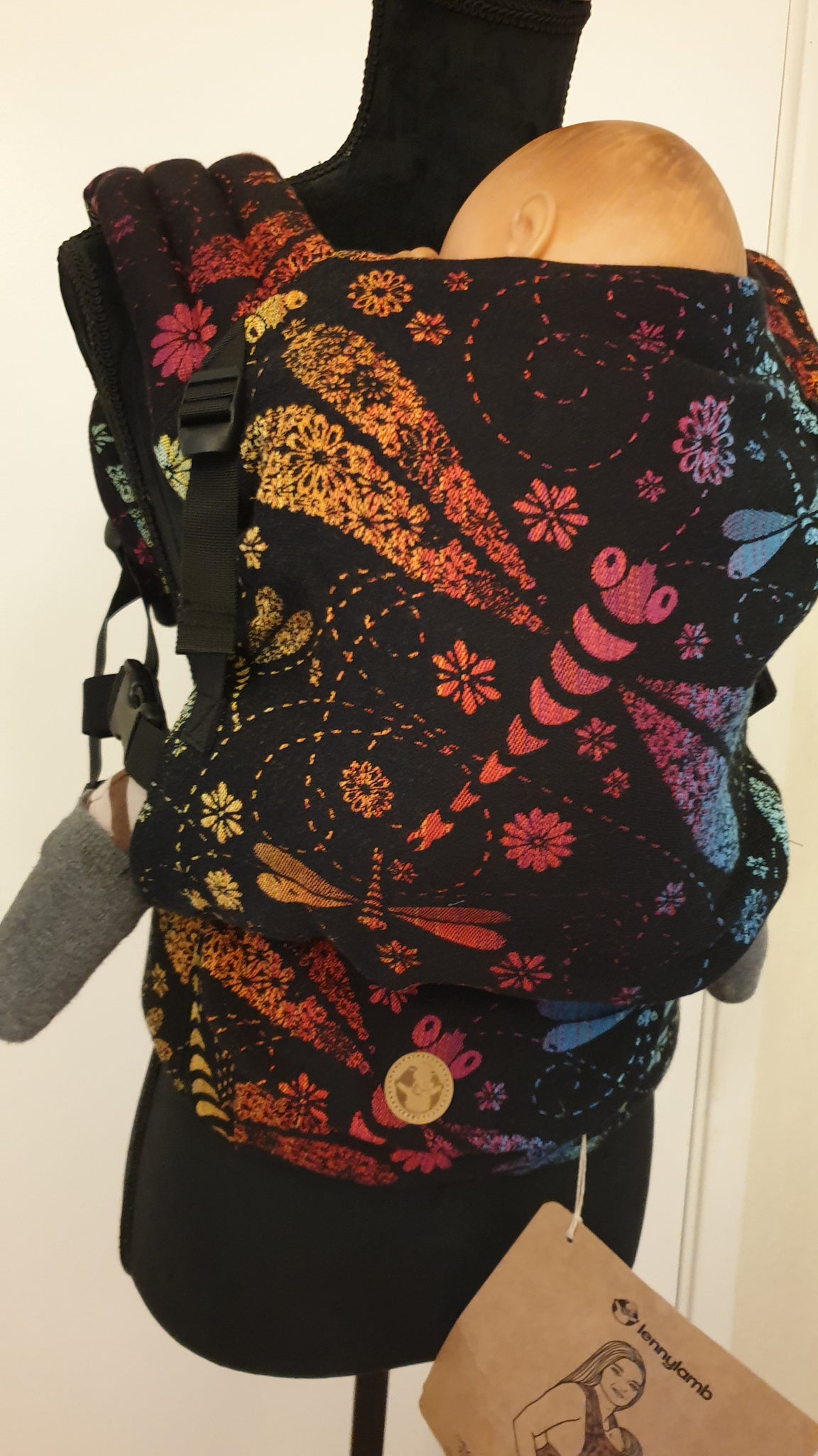 This is from a pre-order. A set consisting of a LennyLight Carrier and hood in the Dragonfly Rainbow Dark fabric. Only one set available. First come, first served!