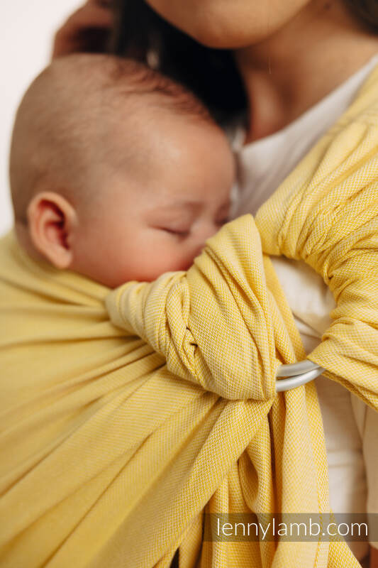 The Ring Sling is a fast, easy-to-use and lightweight carrier. Its big advantage is the fact that you don't have to wrap the baby. All you have to do is pull the fabric correctly through the rings, insert the baby and tighten it (according to the instructions).
