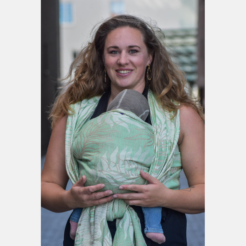Experience the best of four natural fibres in one beautifully balanced wrap. This carefully crafted blend offers comfort, support and luxury – perfect for newborns and toddlers alike. Cotton provides softness, breathability and easy care. It forms the reliable foundation of the wrap. Silk adds a subtle sheen and provides lightness, strength and a smooth texture. Linen provides extra support and a soft texture – ideal for those who appreciate a “grip” wrap that stays firmly in place. Seacell is an innovative fibre made from seaweed, known for its skin-friendly, breathable and caring properties – perfect for the sensitive skin of both babies and wearers.