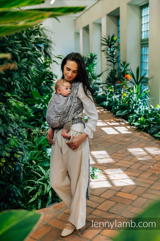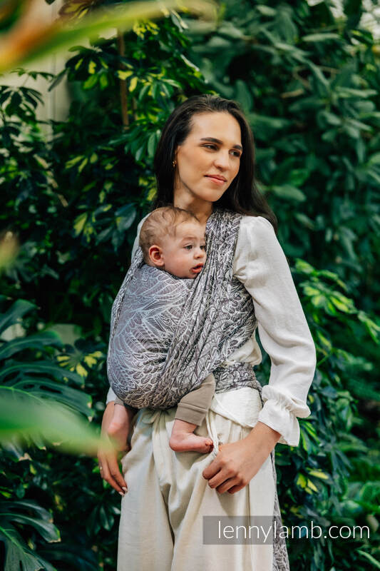 Long Woven Wrap är en perfekt sjal för ett nyfött barn och upp till en 3-åring. Det kan bäras på många olika sätt; samma sjal passar människor i olika storlekar och silhuetter. Dess främsta fördel är det faktum att en vävd sjal alltid är ett bra val, oavsett barnets ålder, vikt eller utvecklingsstadium - allt du behöver göra är att välja den sjal som passar bäst för dig. Du kan prova: "mage-till-mage", vagga, höft eller rygg.